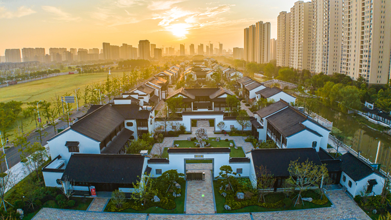 蘇州街以蘇州傳統(tǒng)建筑風(fēng)格為特色,粉墻黛瓦,飛檐戧角,沿河而建,通過古典園林多種營造手法,創(chuàng)造出豐富多樣的景致,或見庭院深深,或見小橋流水,步移景易。同時(shí),融入宿遷地方元素,集商業(yè)、休閑、購物、文化為一體,讓廣大市民在“家門口”就能體驗(yàn)到原汁原味、詩情畫意的蘇式風(fēng)情。