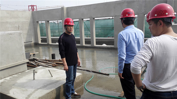 在檢查過程中,根據(jù)開發(fā)公司安全檢查的相關(guān)要求,劉建華指出夢家園先期要進行屋面蓄水工作,其中防水卷材存在使用壽命問題和屋面混凝土自防水的可靠性至關(guān)重要。針對屋面蓄水會暴露屋面防水薄弱點,后期進一步加強防水施工過程中的關(guān)鍵環(huán)節(jié),確保屋面不滲漏。