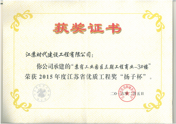 江蘇省“揚子杯”優(yōu)質工程獎是我省建設工程質量最高榮譽獎,為省人民政府確定的行政獎勵, 代表了我省當前工程建設質量的最高水平。揚子杯每年評審一次,評選對象為我省境內、已經建成并投入使用的各類建設工程。該獎的設立旨在促進建設和施工單位提高工程質量水平、增強建筑精品意識。