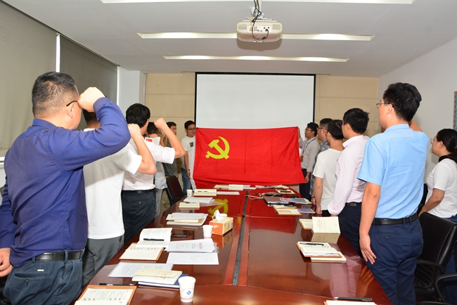 緊接著,開展“四重”活動(dòng)?;顒?dòng)前公司行政人事部專門從園區(qū)檔案室調(diào)取每一名黨員入黨志愿書,將內(nèi)容拍好發(fā)到每人,重溫入黨時(shí)的難忘經(jīng)歷。在劉建華書記的帶領(lǐng)下,右拳高擎,神情莊重,面對鮮紅的黨旗鄭重宣誓,抒發(fā)對黨的忠誠,踐行黨的宗旨,維護(hù)黨的形象和愛黨愛國情懷。