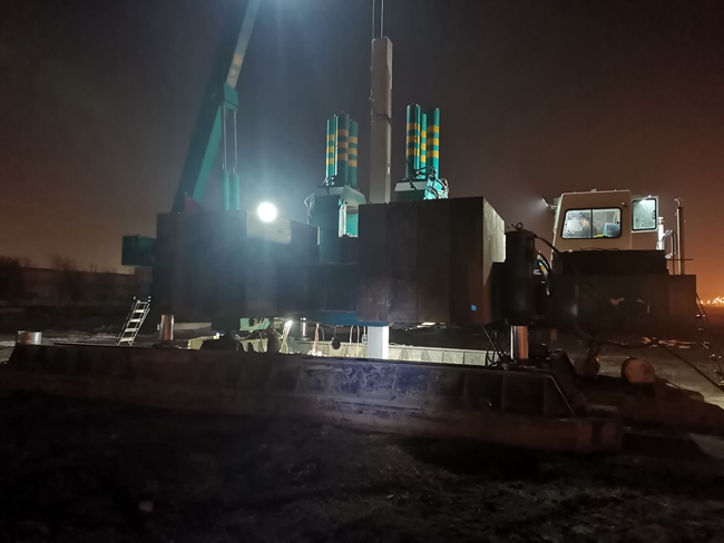項目于2021年12月正式開工建設,總樁長約4.7萬米。樁基工程是整個項目起步的關鍵工程,項目各參建單位緊密配合,面對時間緊、任務重、氣溫低、管控嚴等重重困難,施工不分晝夜,雨天依然堅持施工,最終確保了進度計劃的實現(xiàn)。