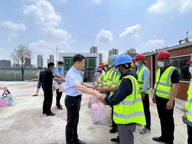 為切實(shí)維護(hù)高溫期間建筑工人身體健康,保障建筑工人在生產(chǎn)過程中的安全與健康,切實(shí)做好安全文明施工,確保工程項(xiàng)目順利推進(jìn)。7月1日上午,總經(jīng)理劉建華帶隊(duì)慰問建設(shè)工程施工現(xiàn)場工人,給他們送去毛巾、香皂、洗發(fā)水等防暑降溫用品,感謝他們對(duì)園區(qū)工程建設(shè)作出的貢獻(xiàn)。