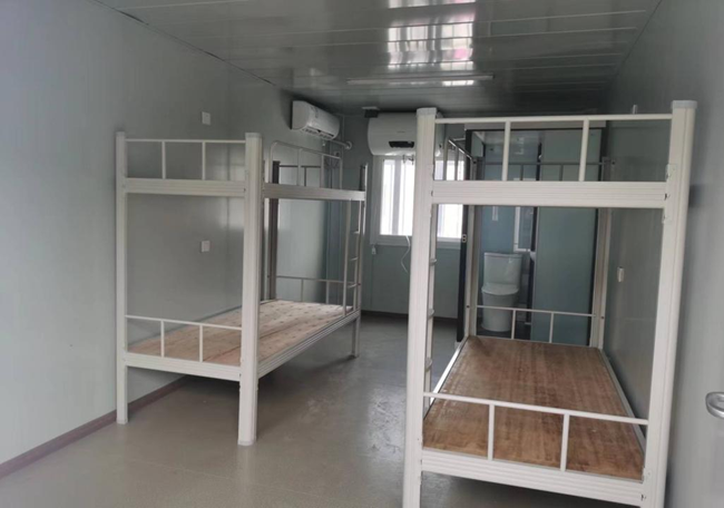 “健康驛站”共設(shè)置集宿區(qū)、核酸檢測區(qū)及生活服務(wù)配套區(qū)三個區(qū)域,其中集宿區(qū)共有266間住宿房,每間均配置衛(wèi)生間、淋浴間、高低床、空調(diào)和熱水器,每間可住4人,項目總可容納1064人。