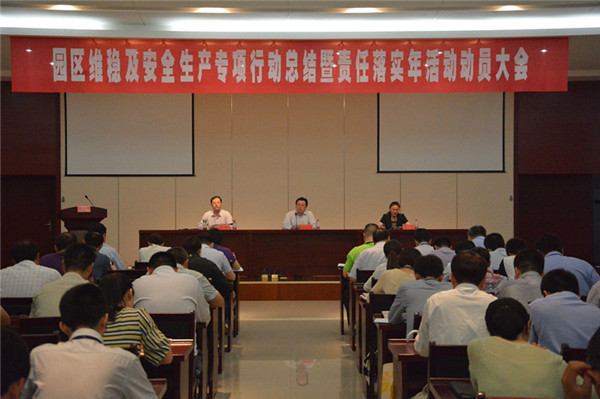 6月24日下午,園區(qū)召開維穩(wěn)及安全生產專項行動總結暨責任落實年活動動員大會。