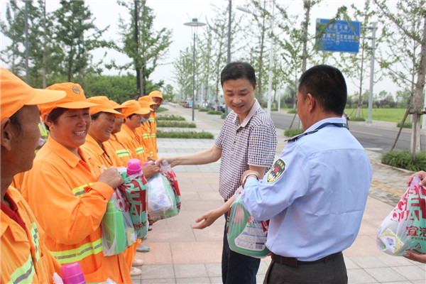 6月29日上午,園區(qū)黨工委委員、管委會副主任、規(guī)劃建設(shè)局局長許紹杰帶隊(duì),親切慰問了奮戰(zhàn)在一線的城市維護(hù)作業(yè)人員,給他們送去了夏日里的問候和黨的關(guān)懷,感謝他們?yōu)閳@區(qū)的整潔、優(yōu)美城市環(huán)境所作出的貢獻(xiàn)。